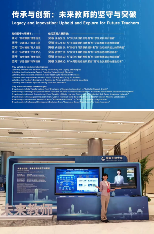 At the exhibition, OUC showcased its practical achievements in “making lifelong education universally accessible through digital intelligence” and highlighted the “six commitments” and “six breakthroughs” that define the spirit and capabilities of future teachers, guided by the spirit of education. Visitors experienced in person in a new teaching model featuring “human-AI collaboration” between future teachers and their digital counterparts.